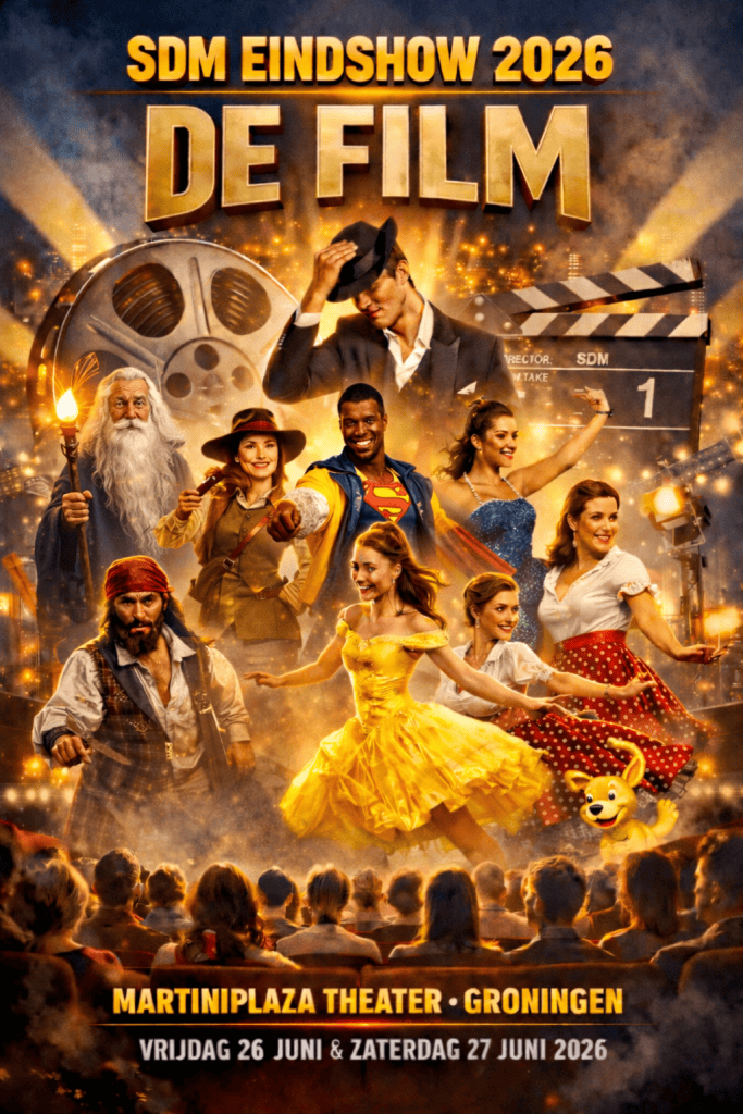 Dit jaar verandert vrijdag 26 en zaterdag 27 juni 2026 het theater van MartiniPlaza in een echte bioscoop. Tijdens onze eindshows kijkt het publiek naar een bijzonder filmprogramma, maar deze films worden niet afgespeeld… ze worden gedanst.